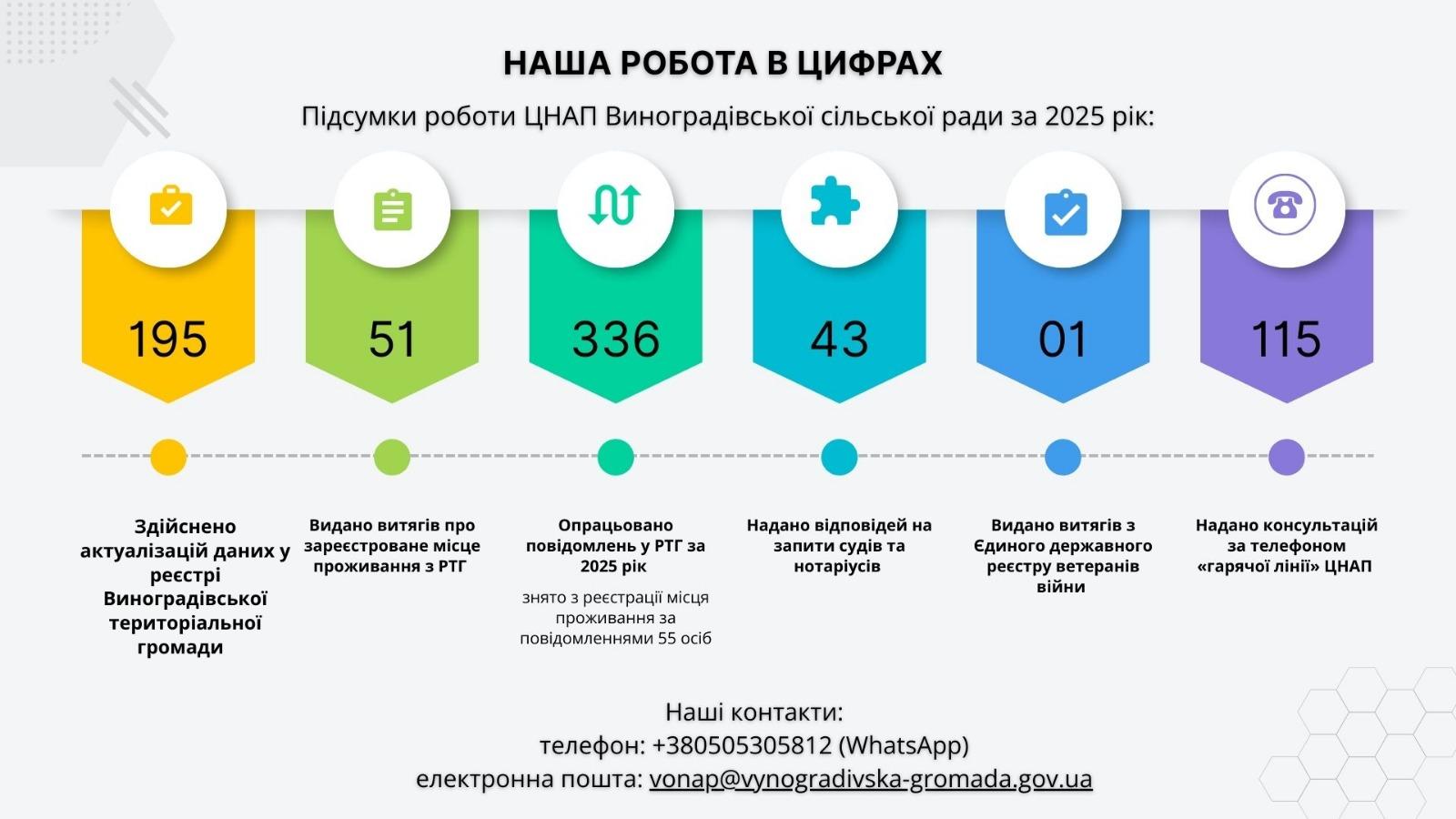 Підбиваючи підсумки минулого року, ми представляємо результати нашої роботи у цифрах та фактах. 2025 рік став для нашого ЦНАПу часом трансформацій, розширення спектра послуг та впровадження нових цифрових стандартів обслуговування. Попри всі виклики, нашою незмінною пріоритетністю залишалися швидкість та доступність кожного сервісу для мешканців громади. Хочемо ознайомити вас з ключовими показниками, за якими стоїть щоденна кропітка праця команди ЦНАПу заради вашої зручності та якісного державного сервісу.